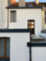 Totaalrenovatie van een afgeleefde rijwoning. De volledige achtergevel werd afgebroken en opnieuw gezet in houtskelet.